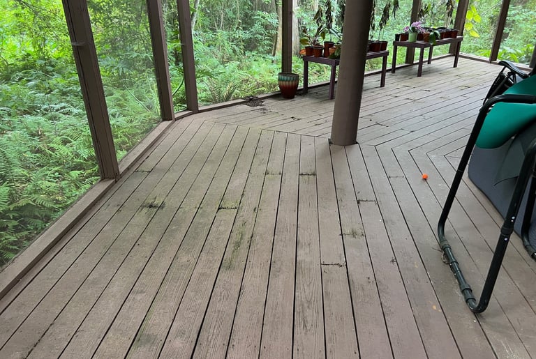 We restored this worn-out deck by replacing damaged wood, reinforcing the structure, and applying a fresh coat of stain.